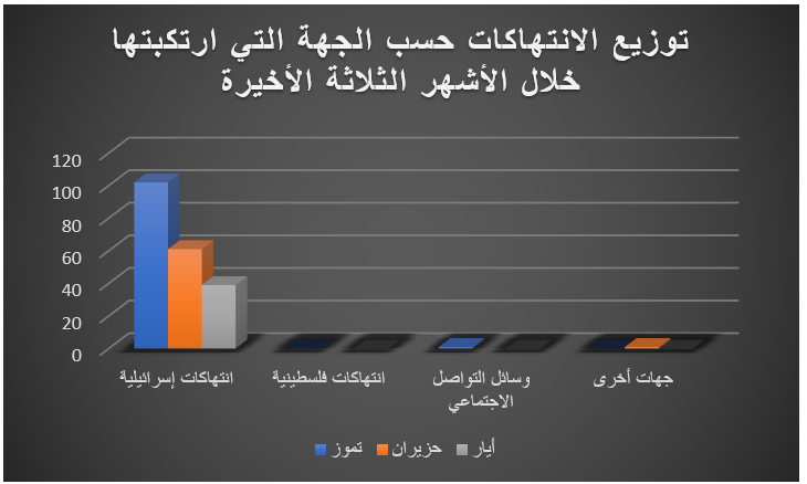 وتأتي هذه الانتهاكات الـ 102 مقابل 61 انتهاك إسرائيلي وثقت خلال شهر حزيران الماضي، وبمعنى آخر فقد ارتفعت الانتهاكات الإسرائيلية خلال شهر تموز بنسبة 67%.