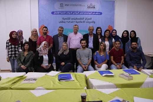 رام الله - 9/10/2018- اختتم المركز الفلسطيني للتنمية والحريات الإعلامية "مـــدى"، في رام الله يوم أمس الاثنين (8/10/2018) دورة تدريبية
