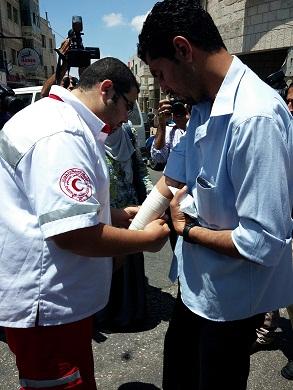 رام الله -(15/06/2014)- اعتدت قوات الاحتلال الإسرائيلي على ثلاثة صحافيين أثناء تغطيتهم لمسيرة بلعين الأسبوعية، وذلك اليوم الجمعة الموافق 13/6/2014.