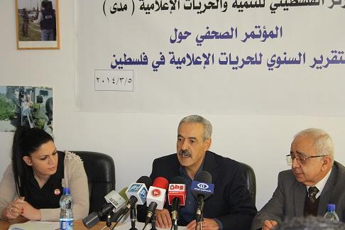 مدى: 229 انتهاكا للحريات الاعلامية في فلسطين خلال عام 2013 5/3/2014 – رام الله: أطلق المركز الفلسطيني للتنمية والحريات الإعلامية (مدى) صباح