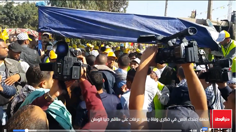 The videographer of Palestine Today Chanel Daoud Nimer Abu Kas (25 years), reported to MADA” I arrived to the place at around 12:40 after I was prevented by security personnel to let me in, I moved forward till I reached Mo’men AlShobaki photographer of Palestine TV, but he reacted nervously and said this place is ours and we do not want anyone to cover from here, he pushed me away with the help of security personnel, and got me down, I left around 13:00pm “.