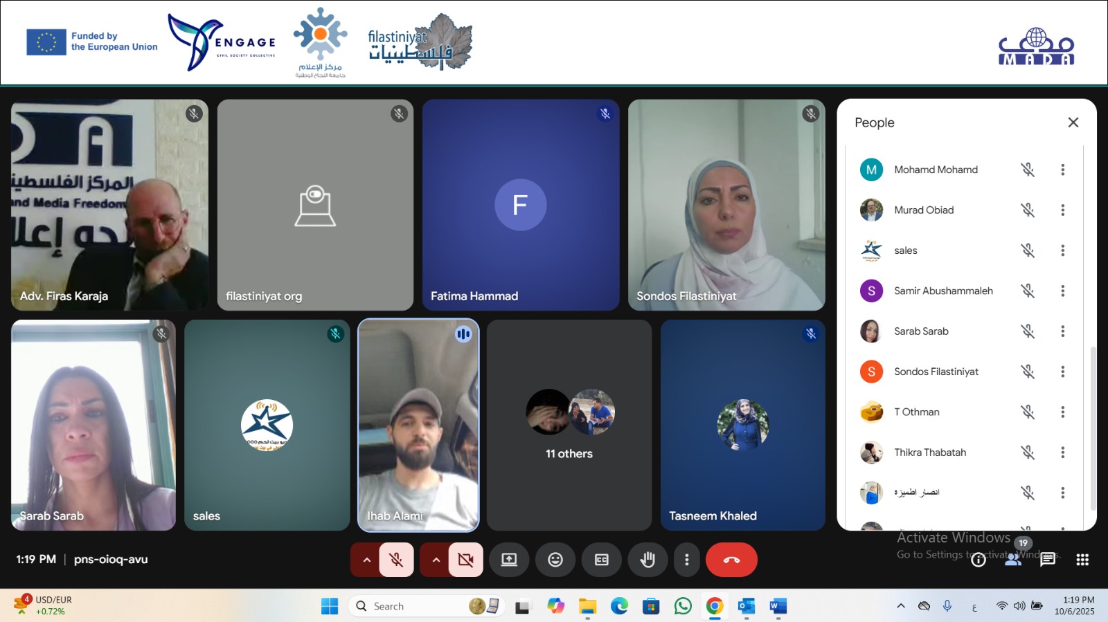 | Ramallah – October 8, 2025 The Palestinian Center for Development and Media Freedoms (MADA) held a hearing session titled “Journalist Arrests: Testimonies and Recommendations” on Monday, October 6, 2025, via Google Meet. The session was organized as part of the Engage Project, implemented by the Filastiniyat Association in partnership |
